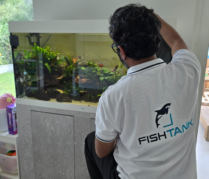 We perform regular cleaning of glass, gravel, and decorations while checking for algae, debris, or water discoloration.